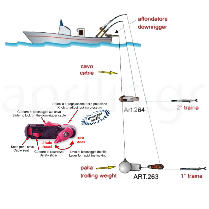 • Απελευθερωτής δολώματος, απελευθερώνει τη πετονιά μόλις χτυπήσει το ψάρι, που τοποθετείται στο σύρμα του downringers με πολλαπλές ρυθμίσεις της Stonfo